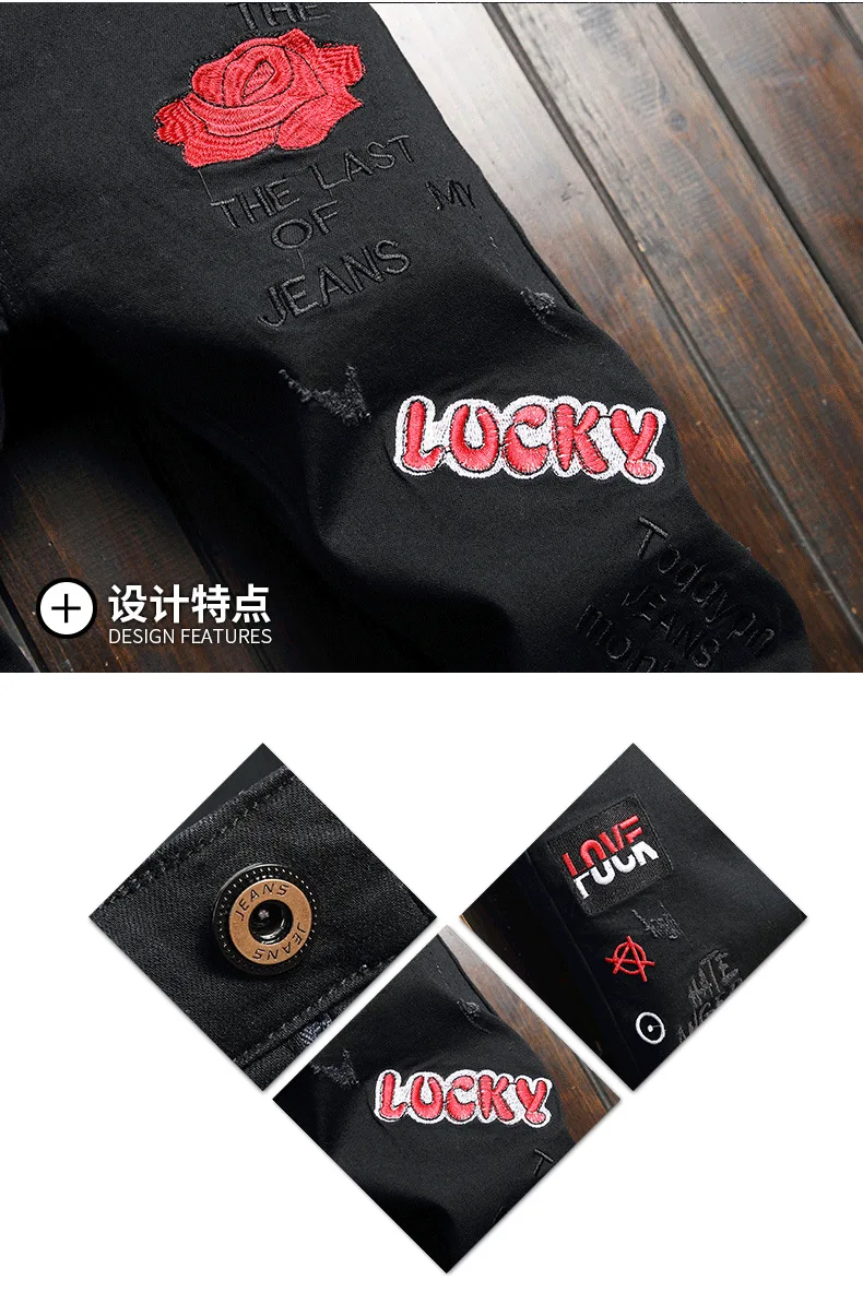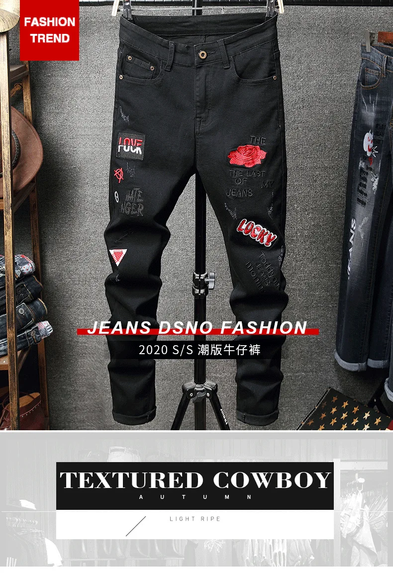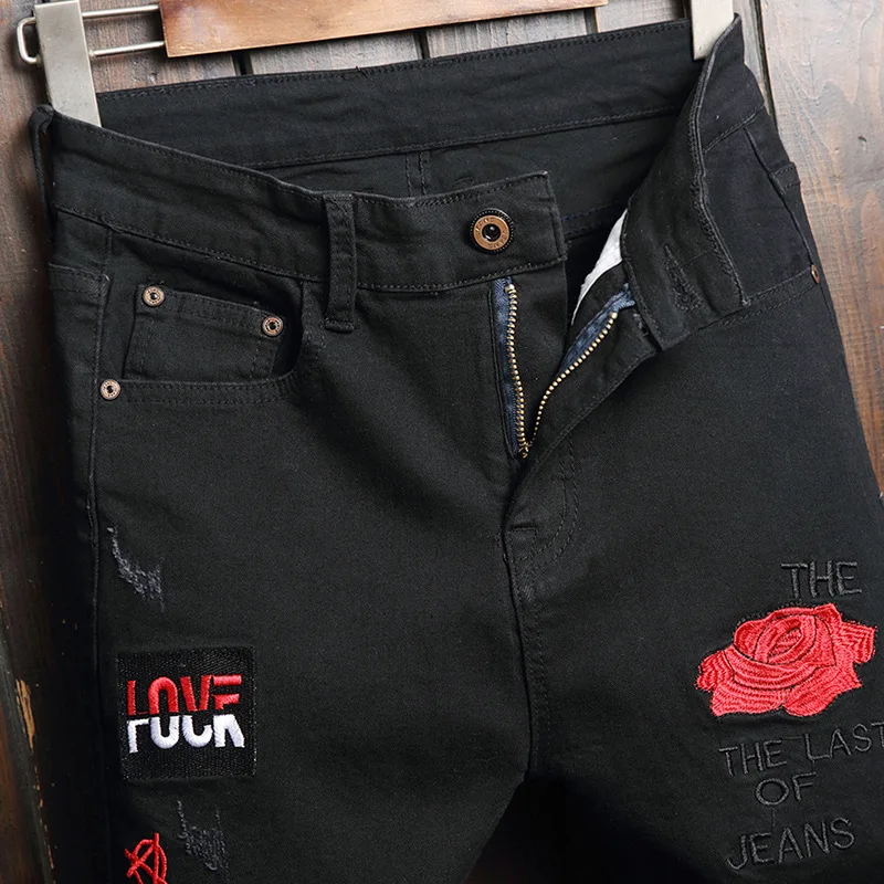 Broken Hole Embroidered Pencil Jeans